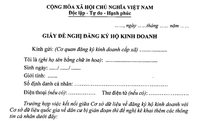 Mẫu giấy đề nghị đăng ký hộ kinh doanh là gì?